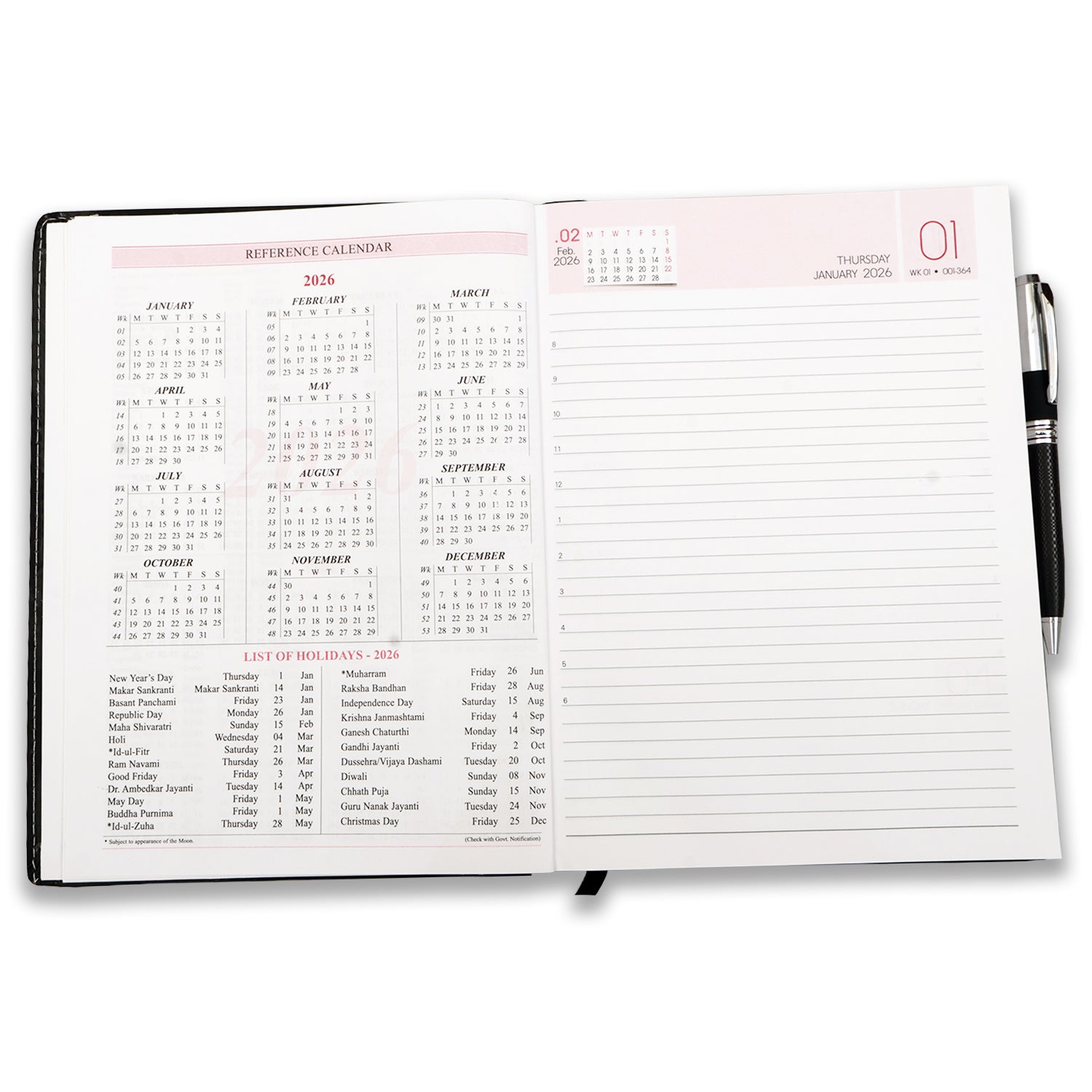 - Personal Information Page-1| Health Page-1|Diary Pages -313| SUNDAY HALF| STD-ISD Codes Pages- 2| Calender-2026-2027| World Time Zone-1| List of Holidays -2026.