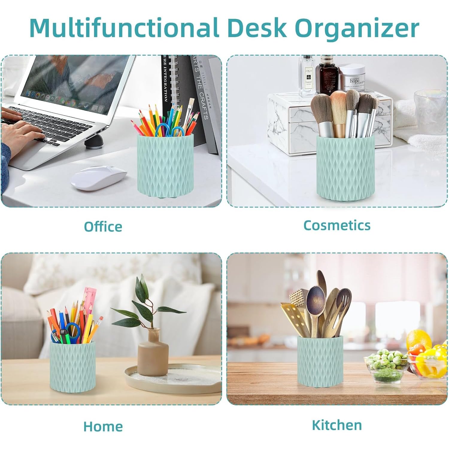 - Tranquil Blue Design: This desktop pen holder features a calm and serene blue color, bringing a touch of coolness and tranquility to busy work and study environments. It is not only a practical stationery storage tool, but also a beautiful scenery on the desktop. Pen holder measures 4.8in×4.6in×4.6in.