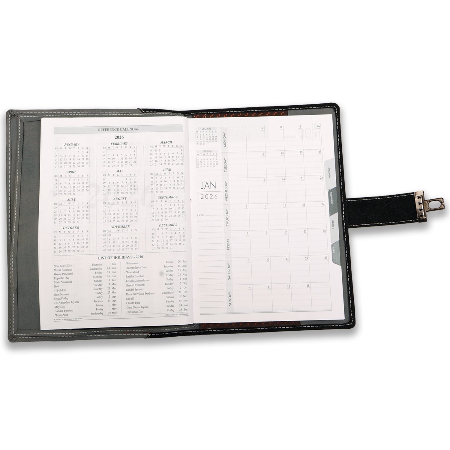 - Personal Information Page-1| Health Page-1|Diary Pages -313| SUNDAY HALF| STD-ISD Codes Pages- 2| Calender-2026-2027| World Time Zone-1| Card Slot - 4| Document Holder Slot -1| Pen Holder Slot -1|Calculator-1.